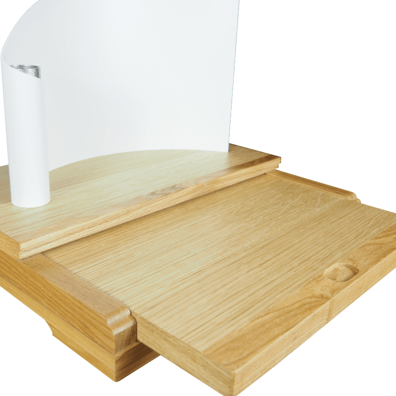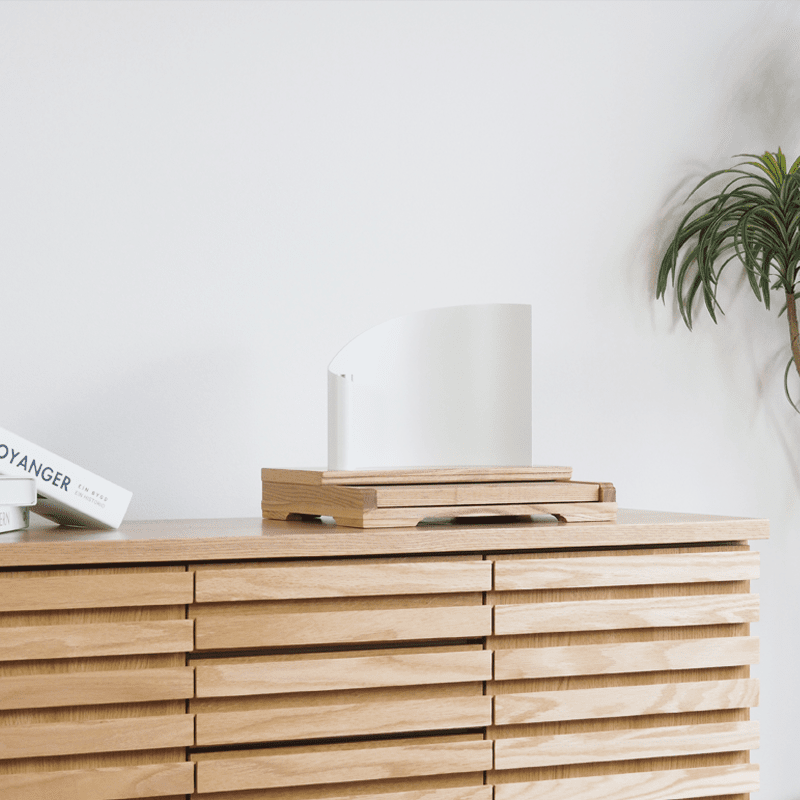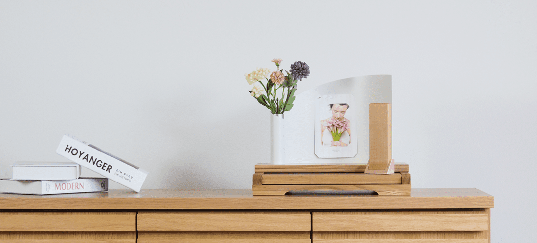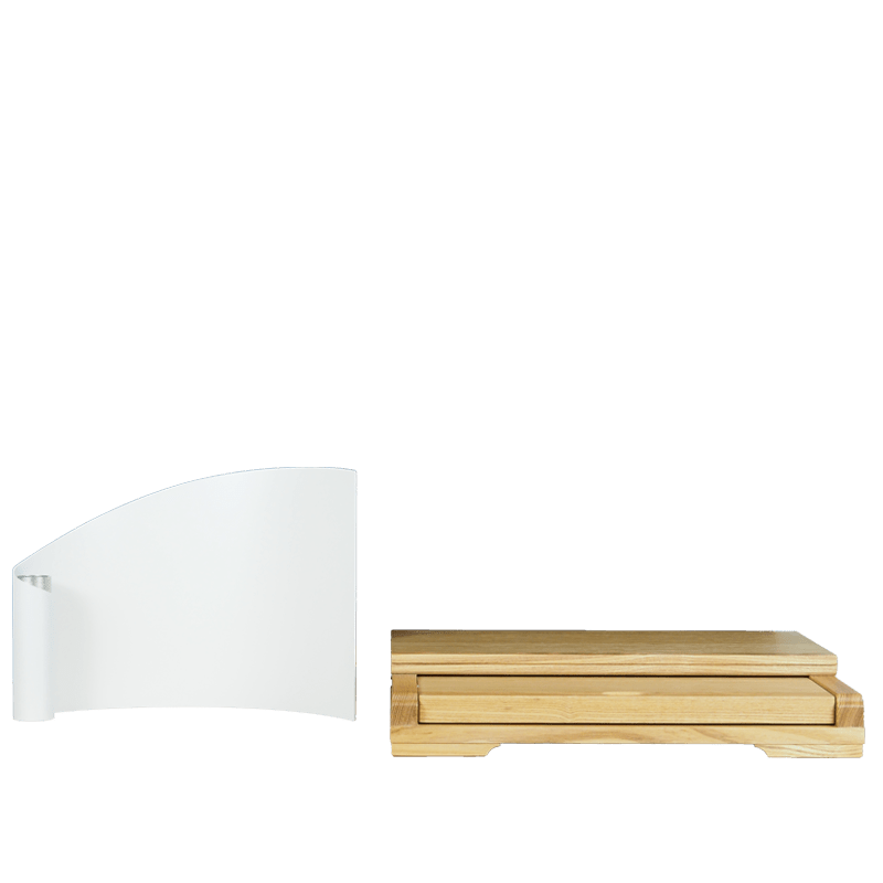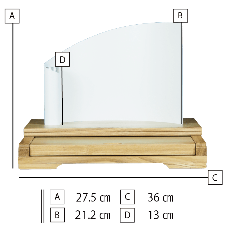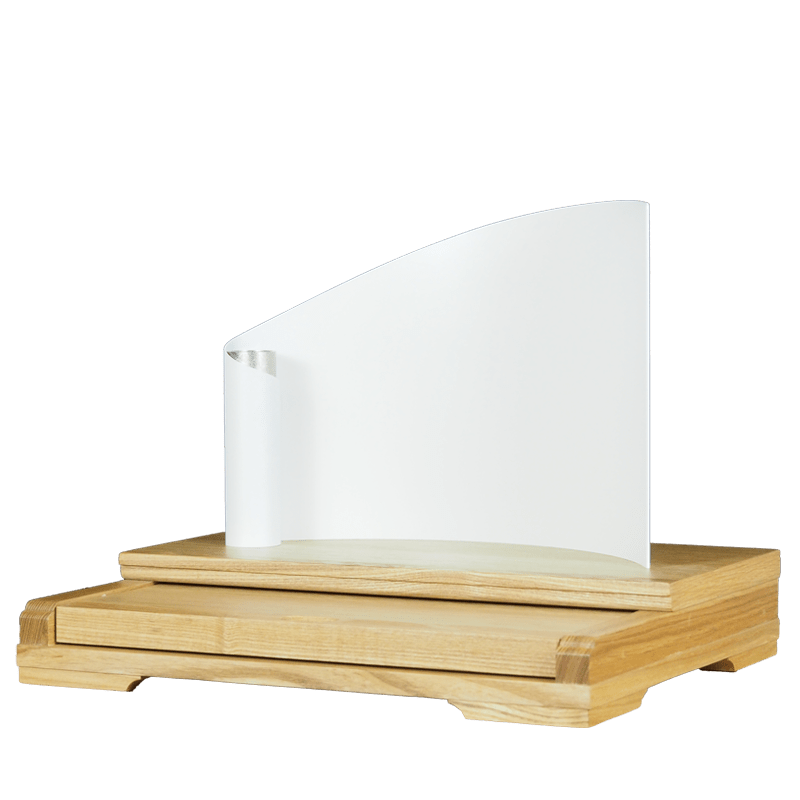 置く場所を選ばないシンプルなデザインで、ステージタイプのミニ仏壇としても使用可能。ステージの上にレイアウトされた美しい曲線のスチールパネルには、マグネットで想い出の写真を貼り付けることができ、パネルサイドにあるフラワースタンドにはお好きな花を飾り、より華やかな祈りの場を演出します。