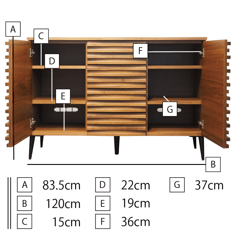 | サイズ | 高さ:83.5cm 台幅:120cm 奥行:43.4cm |