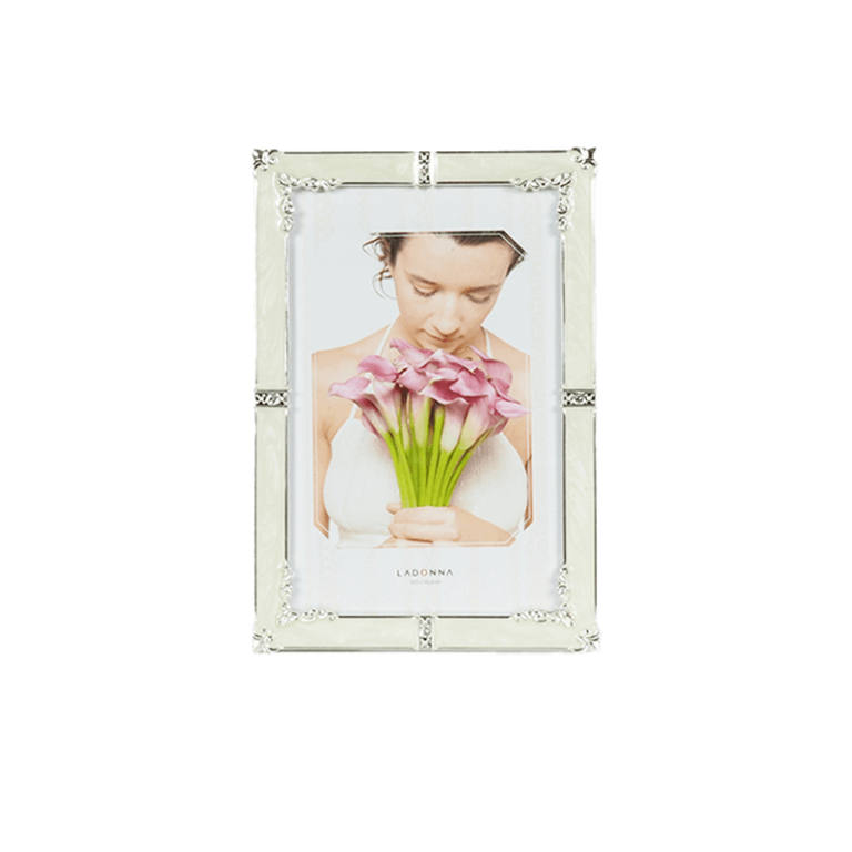 ホワイト&クリームの優しい色合いで写真を引き立てます。フレームの一部分にはアクセントできらめくクリスタルが埋め込まれています。ご供養の場に合わせやすく、仏具と一緒にはもちろん、仏具がなくてもこれだけで素敵な祈りの場が出来ます。